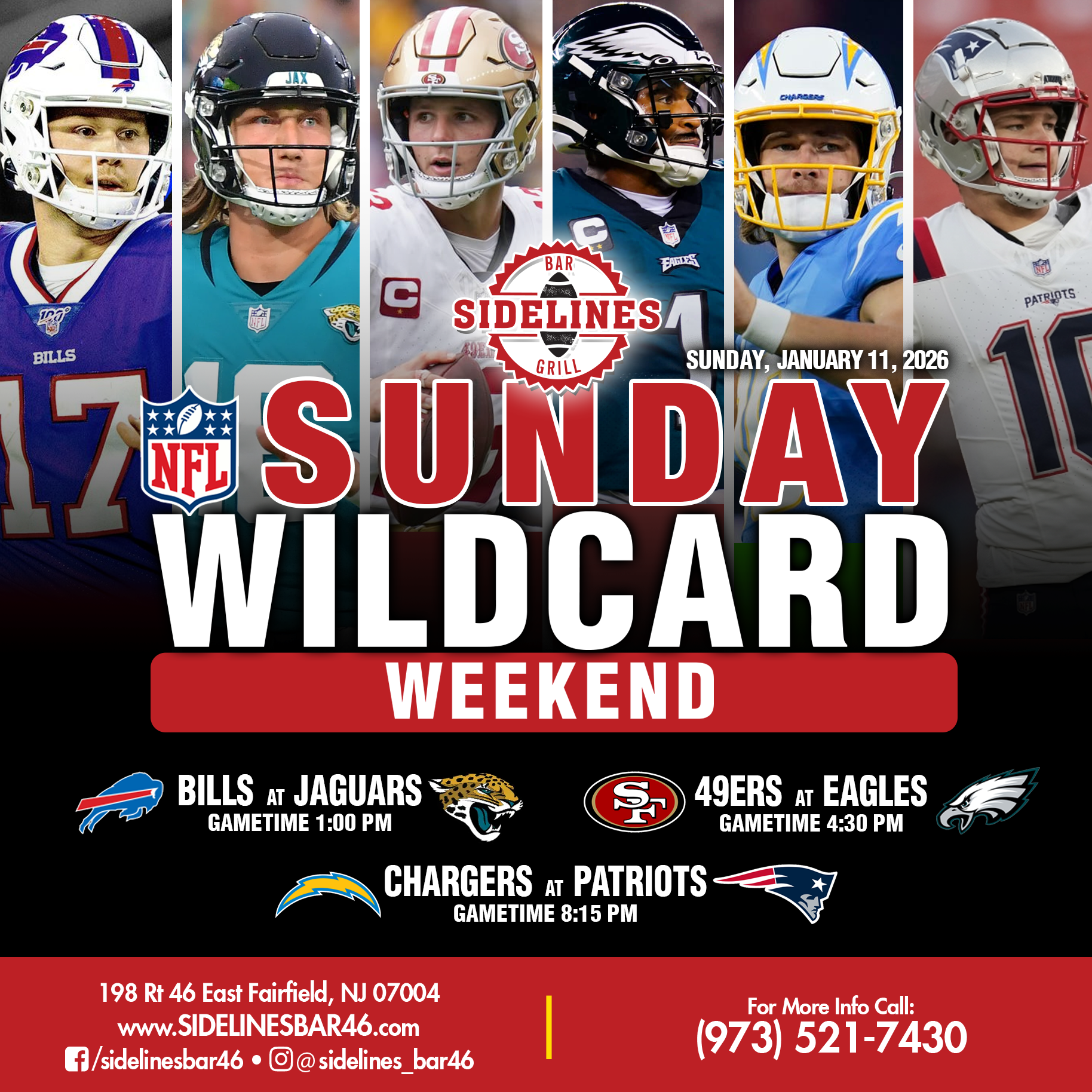 Bills at Jaguars 1:00 PM | Chargers at Patriots 8:15 PM